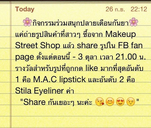 - www.facebook.com/makeupstreetshop (ติดตามชมสินค้าพร้อมส่งอีกเยอะได้ที่ page เลยค่ะ