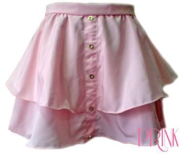กระโปรงผ้าชีฟองสีชมพู มีระบายเป็นชั้น เอวยางยืด ยาว 14"